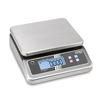 Tabletop Scale KERN FOB-NL in stainless steel with IP67 protection is suitable for use in HACCP quality systems. Its smooth surface makes the scale easy to clean, and it can be used in a variety of environments. As an accessory, a stainless steel weighing pan can be purchased for loose parts or, for example, fruit and vegetables.