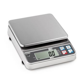 Tabletop Scale KERN FOB in stainless steel is equipped with a special checkweighing display that changes color between red and green. The display makes it quick and easy to check multiple products in succession and is particularly suitable for portioning, dosing, and sorting.
