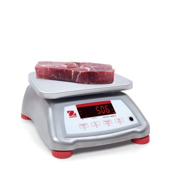 The OHAUS Valor 4000 is a water-resistant food scale that sets new industry standards with a combination of touch-free operation, speed, and durability. The scale is available in both stainless steel and plastic and features LED displays on both the front and back. Thanks in part to its puncture-proof keypad, the scale is ideal for dry environments as well as washdown environments.