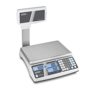 Retail Scale KERN RIB is a reliable scale equipped with three separate displays to show weight, unit price, and total price. The scale has 10 direct keys for frequently used items and a memory capable of storing 20 PLUs (pre-programmed prices/units). As an optional accessory, the scale can be equipped with a battery, making it ideal for mobile use – for example, at markets. A stainless steel tare pan for vegetables, fruit, or other items can be purchased separately.