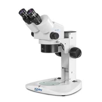 The KERN OZL 45 stereo microscope features a continuous zoom of up to 50x. The high-quality HSWF (High Super Wide Field) eyepieces minimize eye strain, making the microscope ideal for extended use, even for eyeglass wearers. The microscope comes with 10W halogen illumination, both from above and below.