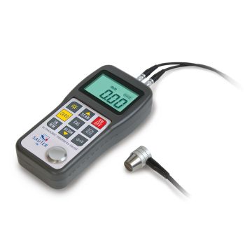 SAUTER TN-US Ultrasonic Thickness Gauge – With a scan mode that performs up to 10 measurements per second, the SAUTER TN-US allows continuous measurements. The thickness gauge is delivered complete and ready to use – including measuring sensor, batteries, calibration plate, and ultrasonic gel – all packed in a sturdy and practical case. The calibration plate is integrated into the gauge itself, so it is always at hand. The gauge uses ultrasound to measure material thickness. With a wide range of sound velocities, it can be set for most homogeneous materials. The thickness gauge has memory for 20 files, each storing up to 100 measurements.