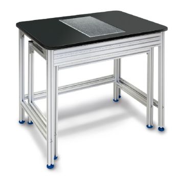 - et arbejdsbord, hvis overflade omgiver granitpladen og tilbyder mange opbevaringsmuligheder. Den robuste og pulverlakerede stålramme har fire højdejusterbare fødder, som med stor nøjagtighed kan bruges til at jævne vejebordet, hvis gulvet altså er ujævnt